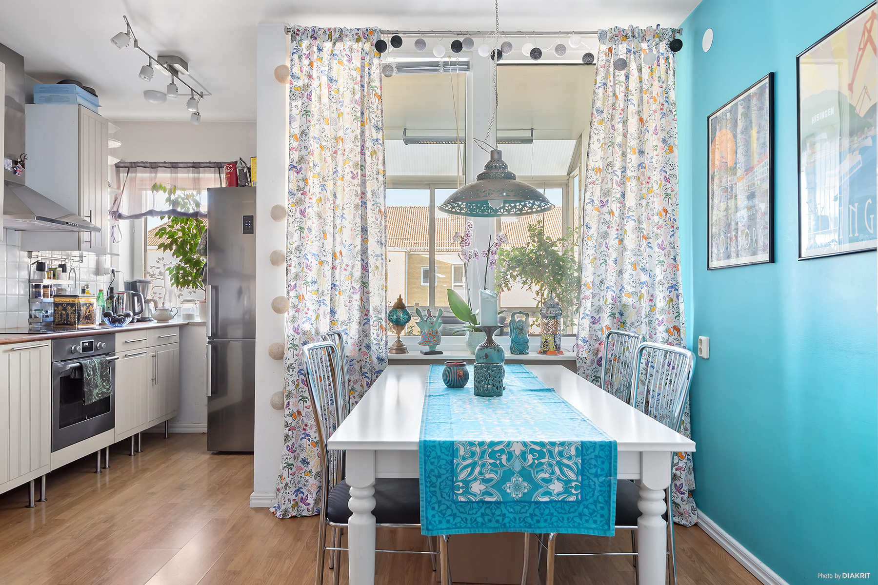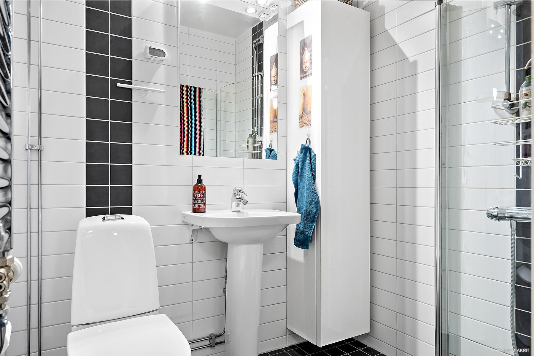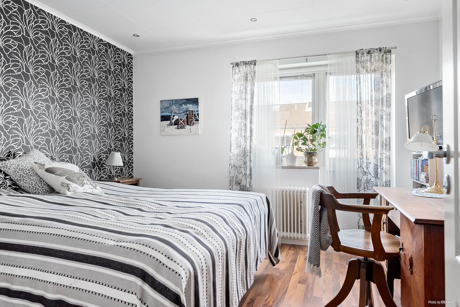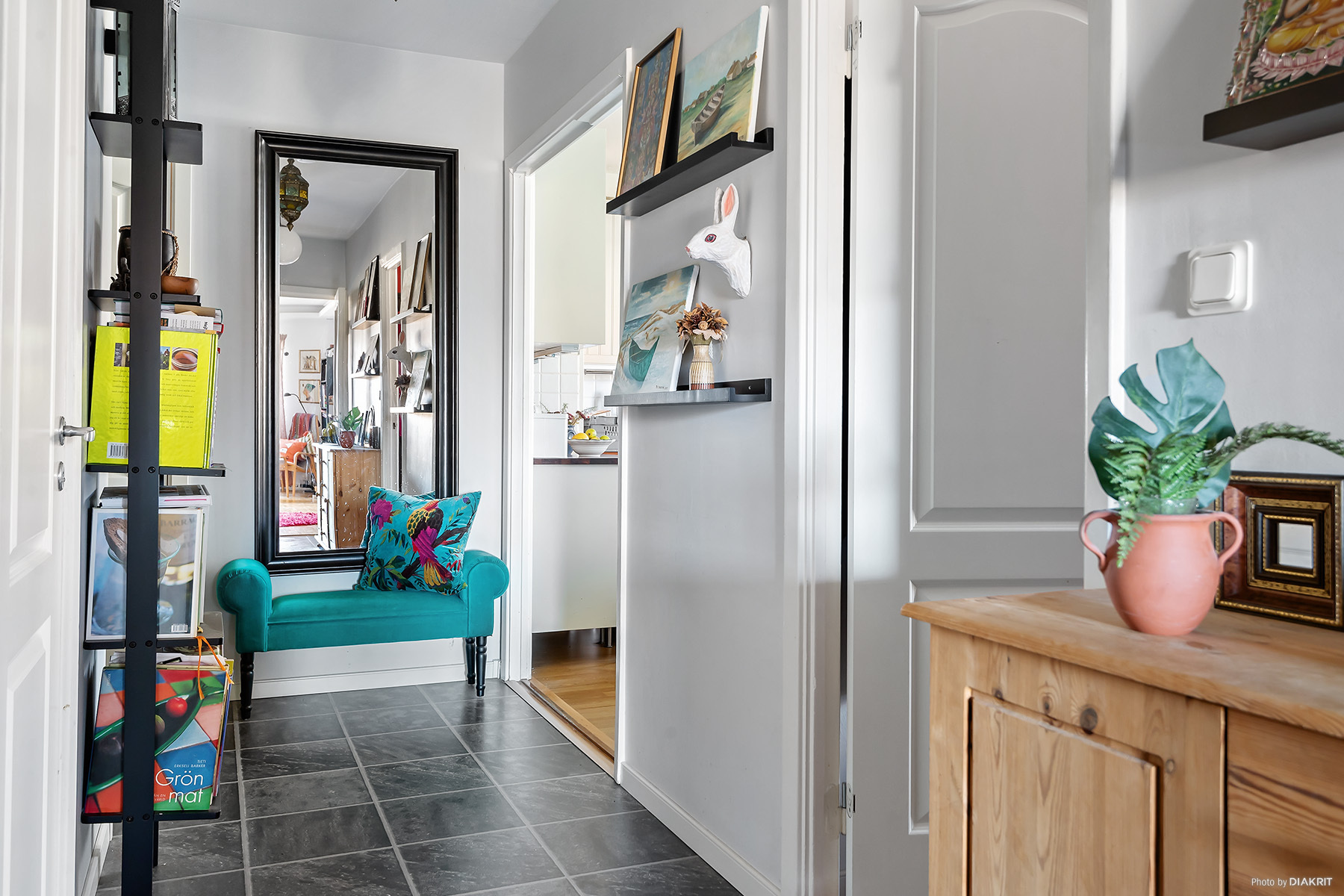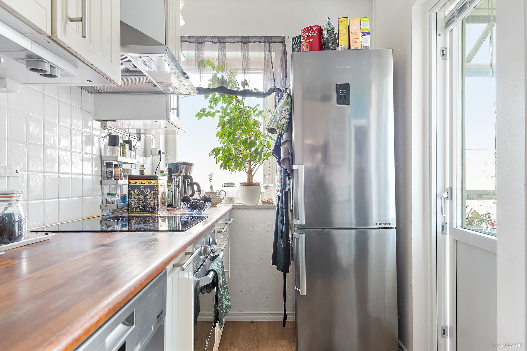 Här finns en lägenhet högst upp i huset med en härlig och fri vy. En varm och välkomnade hall med bra avhängningsmöjligheter. I hallen ligger ett klinkerinspirerat laminatgolv. Genomgående ljus lägenhet. Köket har skåpsluckor i offwhite och är i behov av uppfräschning. Matchade bänkskiva i ek. Köket har en rostfri maskinpark med kyl/frys, diskmaskin, häll och ugn. Härligt ljusinsläpp från fönstret där ett köksbord får sin naturliga plats. Från köket når du den inglasade balkongen i sydvästläge. Badrummet är helkaklat med vita kakelplattor på väggarna och mörkgråa plattor på golvet. Vitt porslin, toalett, handfat med förvaring och dusch. Lägenheten har två stora sovrum där både sängar, sängmöbler och skrivbord får plats. Sovrum 1 har idag en fondvägg i rött, utgång till balkongen finns även här. I hallen hittar du även separat tvättstuga med både förvaring och handfat. Det finns även ett separat garderobsutrymme med gott om plats till förvaring. Sovrum 2 är ännu större och med ljusa väggar samt fondvägg. Lägenhetens mittpunkt, vardagsrummet, ger många valmöjligheter i möblering. Fantastiskt ljus från fönsterna och många väggar att jobba med möblemang emot. Här finns det även plats för ett matsalsbord om så önskas. I taket finns det även spotlights. En lägenhet som bör upplevas på plats, välkommen att boka visning!