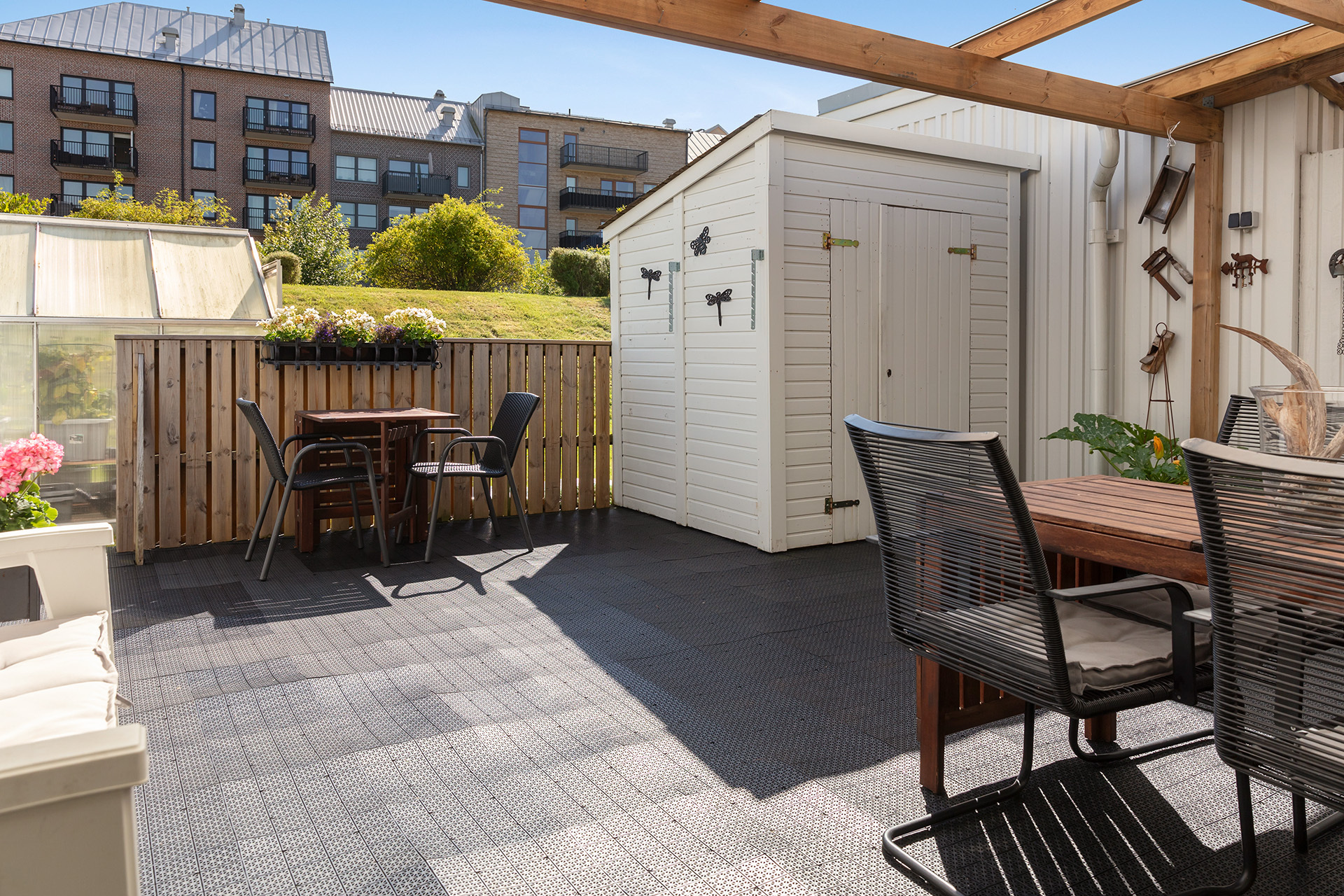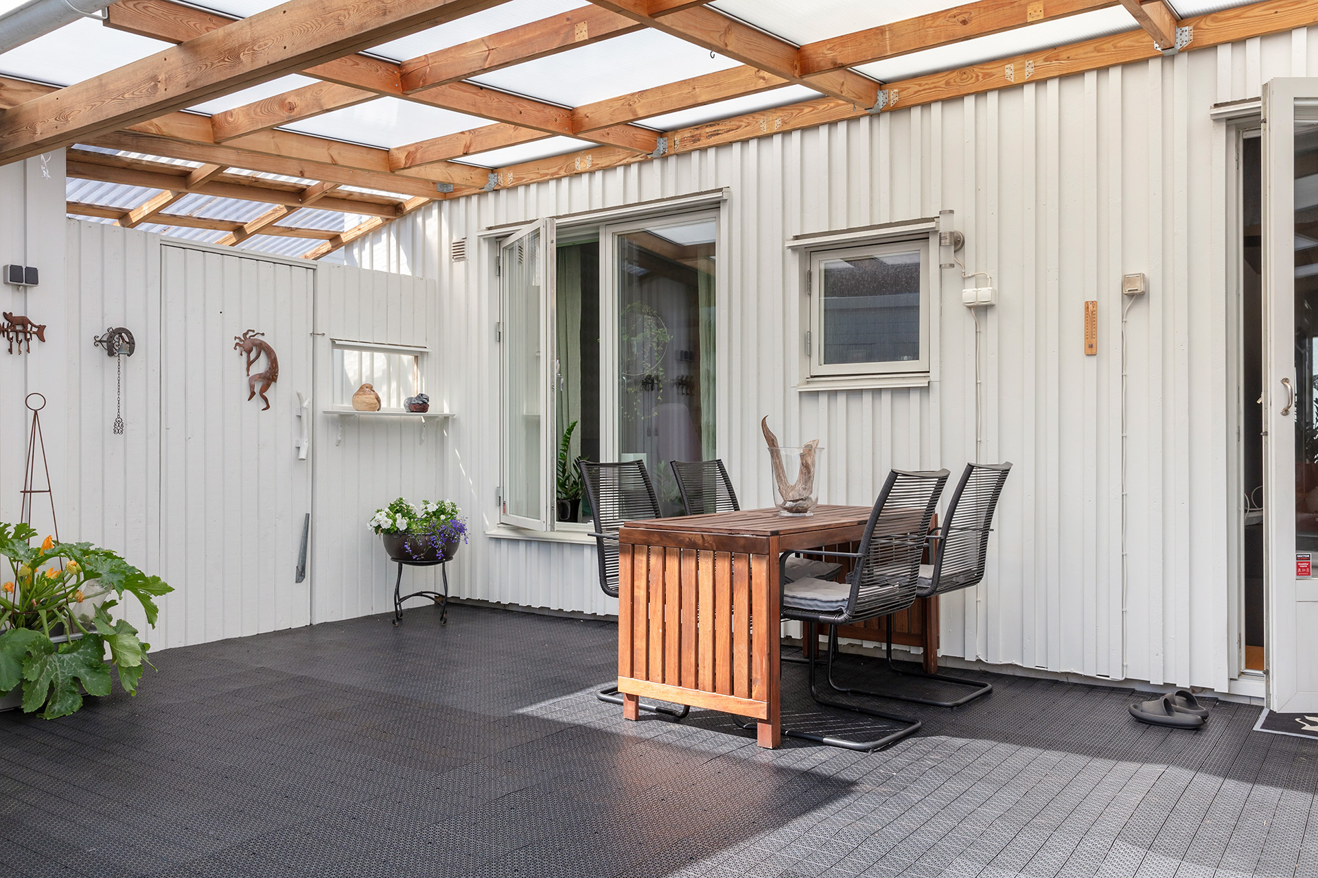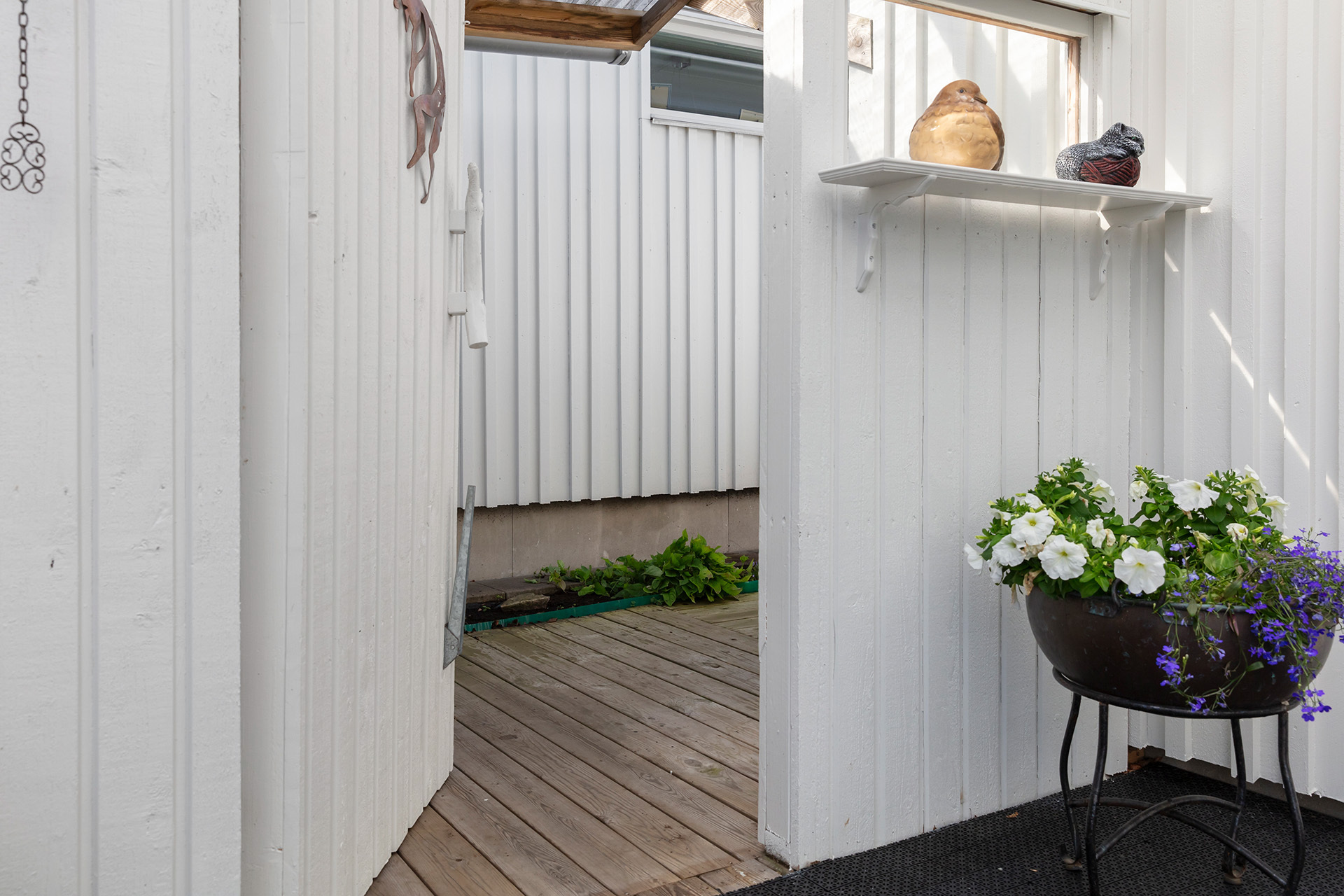 Området Lilla Brunnehagsvägen är ett 55+ boende i enplanshus och bostadsrättsform, området ligger centralt i Tuve. Här är allting nyligen renoverat så det är bara att flytta in! Du kommer att mötas av en trevlig ljus bostad med uteplats såväl framför som bakom huset. Huset ligger som hörntomt med fritt läge till vänster om bostaden och även närhet till boulebanan och bussen. Hall: Hallen är ljus och välkomnande med plats för förvaringsmöjligheter. Bakom en garderob med skjutdörrar till höger i entrén finns även gott om förvaring för ytterkläder. Hallen är försedd med antracit grått klinkerslaminat. I övrigt ligger ekparkett i huset. Då ytterdörren har ett fönster med sidofönster intill blir det ett fint ljusinsläpp. Toalett Gästtoaletten ligger till höger i hallen. Sovrum 1: Det större sovrummet har även det garderober bakom skjutdörrar för maximal förvaring. Ljusgrå tapeter pryder väggarna och parkett på golvet och stora fönster som släpper in ljuset. Sovrum 2: Kan användas som barnrum/gästrum eller arbetsrum. Klädkammare finns i hallen. Sovrum 3: Det tredje sovrummet är inrett med lättstädad nålfiltsmatta och ljusa väggar samt en fondtapet. Kan användas som barnrum/gästrum eller arbetsrum. Badrum: Badrummet ligger i anslutning till sovrummen med dusch bakom en glasvägg, handfat med förvaring och tvättmaskin (både tvätt och tork i samma). Inrett med Marrakesh stil på golvet och grå kakel på väggarna. En praktisk handdukstork som levererar en varm handduk efter en kall dusch. Stora badrummet är nyligen renoverat med våtrumsintyg nov 2024. Kök och matplats: Köket är fräscht med ljusa köksluckor som lackades om 2025 och med svarta metallhandtag. Bra förvaring för kökets alla verktyg. Väggen pryds av en trevlig kakelvägg som leder tankarna till en bergsvägg. Vitvarorna med fläkt, diskmaskin, kyl och frys, ugn och micro är i rostfritt. Ugnen och micron är i bra arbetshöjd för att spara ryggen, fläkten har en praktisk förvaring för de kryddor man vill ha lätt till hands. Bredvid kyl/frysen finner du ett stor utdragbart skafferi, perfekt! Induktionshäll och bänkskiva går i svart och grått vilket harmoniserar väl med den glimriga kakelväggen. Ett trevligt litet fönster är beläget mellan skåp och diskho vilket släpper in härligt ljus och gör köket mer levande. Köket har gott om plats för ett större köksbord som med fördel placeras intill fönstret mot altanen. Vardagsrum: Stort och rymligt vardagsrum där fönstren får ta plats. Stor soffgrupp med möblemang får enkelt plats. För den som önskar ha ett matsalsbord är det inga problem. I anslutning till vardagsrummet finner du det tredje sovrummet. Övriga utrymmen: På baksidan finner du uteplatsen med ordentligt plastgolv. Här är större delar täckta med tak så man kan njuta av alla årstider och väderlek. Altanen angränsar till en större gräsyta och har förrådsutrymmen där man kan förvara det som hör utelivet till. Staketet runt altanen är nytt och fräscht och man tar sig lätt ut till resten av trädgården där det också finns ett härligt växthus och bara ett stenkast ifrån boulebanan. Två stora förråd tillhör lägenheten som finns på baksidan. Framsidan är inbjudande med både altandäck och rabatter. Till lägenheten tillhör en parkeringsplats under tak.